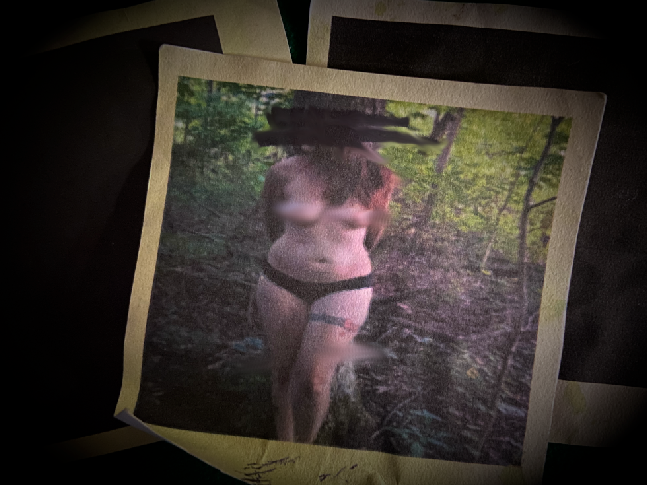 Robin finds a polaroid picture of a partially naked, bound woman with her face marked out. As disturbing as that is, they soon find other things in the woods that throws them off even more: an abandoned camera that contains disturbing images, more Polaroids of naked, bound people, an ancient necklace with a mysterious aura, and a stranger in the forest that seems to know them, but then vanishes.